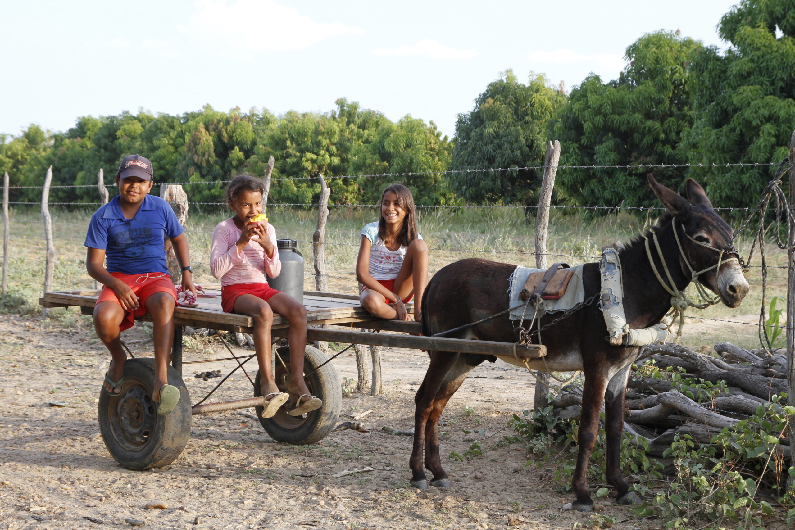 O Safra é verdadeiramente bonito. Deixando-se a agrovila com suas ruas arborizadas, casas bem cuidadas e quintais floridos, passa-se imediatamente às áreas de roça. Aqui, a lógica do sertão-miséria foi revirada do avesso. Contrariando as estatísticas que apontam perda total da produção de grãos no Estado por conta da estiagem, os milharais crescem vigorosos. Ladeada de coqueiros carregados, a roça de macaxeira consorciada com mangueiras recém plantadas irradia verdes de todas as tonalidades. Até mesmo os pequenos trechos de vegetação nativa são suáveis e gentis, oferecendo sombra em lugar da dureza ressequida que caracteriza a Caatinga nesta época do ano. E é em um desses “bosques” que seu José surpreende um grupo festivo em almoço familiar (porque era sábado), e apresenta Gilmar Lucas da Silva, dono do lote.