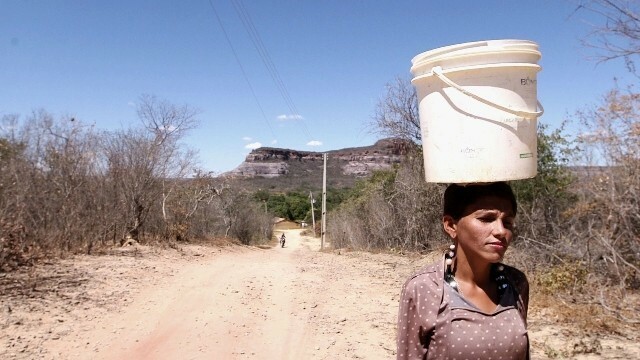 No vilarejo de Cajueiro, a uma hora do centro de Guaribas por uma estrada de terra esburacada, a água ainda não chegou às casas. Elenilde Ribeiro, 39 anos, caminha com a sobrinha por um areial com a lata na cabeça, outra na mão. É ela quem cria a menina. “Não quero que ela sofra como eu sofri”, diz. Chegando na casa, o capricho se mostra nos paninhos embaixo de copos metálicos, na estante com fotos de família, o brasão do Palmeiras, e um gato de louça ao lado da imagem de Jesus. Do lado de fora, o banheiro – onde se usa caneca e penico –, um pátio bem varrido, uma horta suspensa, e uma pilha de lenha que Elenilde mesma coleta e quebra, apontando: “está aqui meu botijão de gás”.